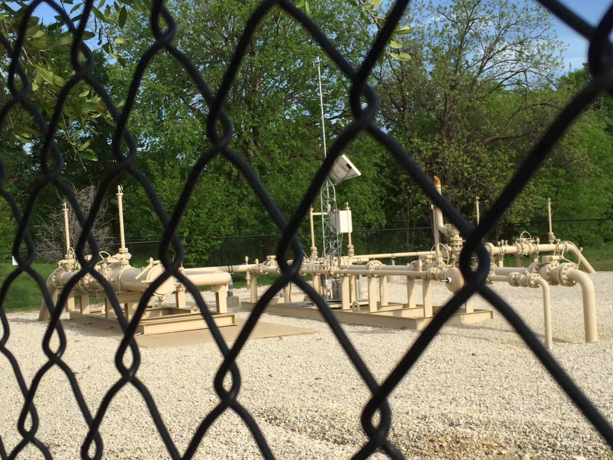 Arribem a una cosa rara que potser sorprendrà a molts lectors. FW i algunes altres ciutats del Metroplex estan damunt de la bossa de gas natural més gran de la nació. Molts residents cobren royalties de la companyia que explota el gas sota els seus jardins. Com a conseqüència els pous d’extracció estan repartits dintre del casc urbà per tot arreu. Prop de casa en conec cinc, un d’ells el de les fotos, però la companyia diu que n’hi ha 1,500(!!!!). Potser us interessaran les fotos. No hi treballa ningú ni fan soroll. Tenen uns tubs de ferro sortint de terra, uns quants tancs de magatzematge i pantalles de sol per obtenir electricitat per a l’ordinador. Estan sempre a una mena de jardí envoltat per una xarxa metàl·lica. El gas surt per un gasoduct subterrani. No són ni macos ni lletjos però no molesten ningú. Tothom els accepta i diuen que no hi ha perill. Considereu que es tracta de gas, no de petroli. Curiosament, l’ús domèstic del gas és molt limitat i tot funciona amb electricitat. En qualsevol, gràcies al gas no hi ha cap central que cremi carbó. Ara que el CO2 és el mateix.